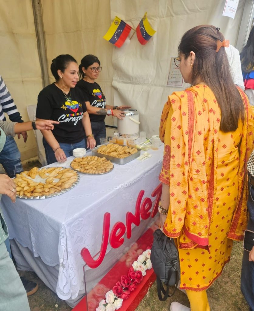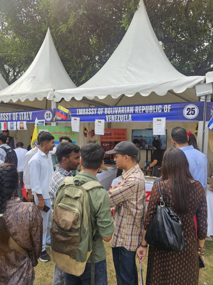 La Embajada de Venezuela en la India engalanó el festival educativo de la Universidad Jamia Milia Islamia, denominada la “Talimi Mela”, con un stand del país suramericano, en el que los estudiantes conocieron la oferta exportable y las posibilidades del turismo multi destino venezolano, y degustaron empanadas, tequeños y papelón con limón.