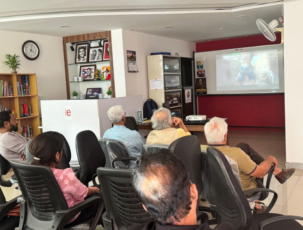 La jornada, que estuvo encabezada por el docente indio, Ranjet Kumar, y el doctor Sabyasachi Chattejee, astrofísico, escritor y militante, quienes expusieron la situación actual del país suramericano, denunciaron la agresión militar de los Estados Unidos de América (EEUU) en la madrugada del pasado 3 de enero, y el secuestro de la pareja presidencial, exigiendo su inmediata liberación.